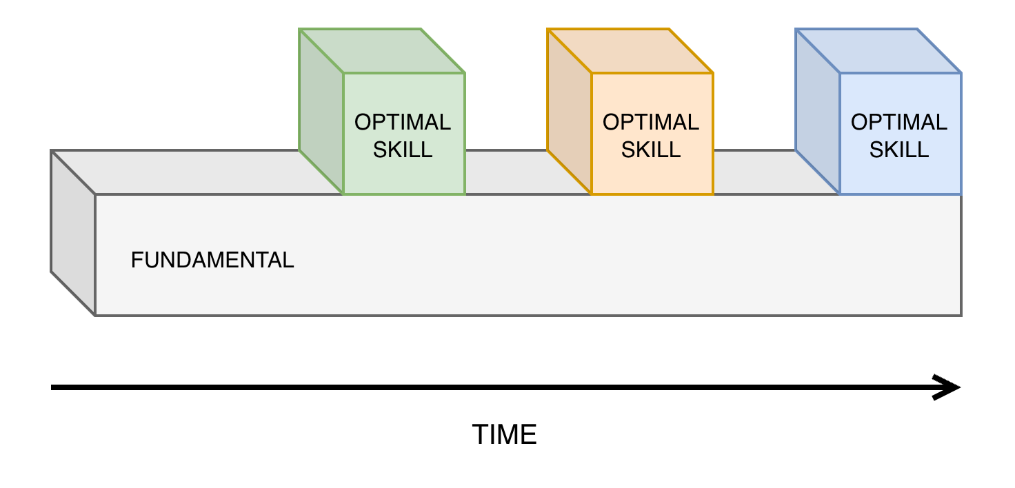 If one had learned these abstract fundamentals early on, maybe it would have been much faster to learn the more concrete manifestations later on. Maybe this speed of skill learning would have permitted access to jobs demanding those skills at a time when it was most profitable to know them.